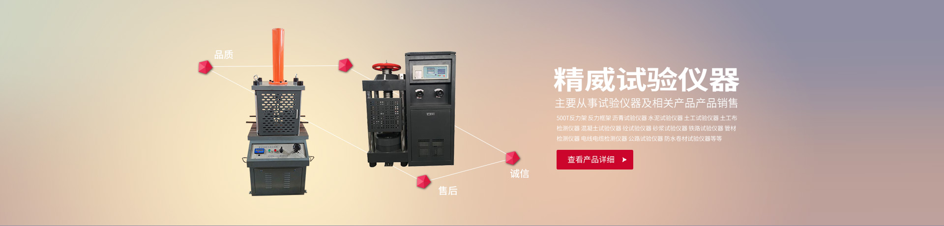 河北精威試驗儀器有限公司所成立于2007年,是位于河北省石家莊試驗儀器重點企業,主要從事試驗儀器及相關產品產品銷售。500T反力架反力框架瀝青試驗儀器水泥試驗儀器土工試驗儀器土工布檢測儀器混凝土試驗儀器砼試驗儀器砂漿試驗儀器鐵路試驗儀器管材檢測儀器電線電纜檢測儀器公路試驗儀器防水卷材試驗儀器無損檢測儀器鋼筋檢測儀器【更多】